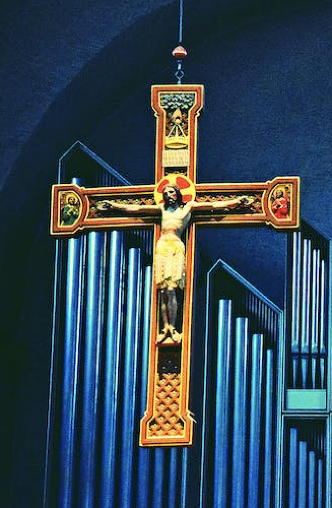 As a kid, the church my family attended in Seattle was the merger of an old Norwegian church and an old Swedish church. Being a hard-core Protestant congregation, the sanctuary was simple and unadorned by imagery of any kind. The pulpit stood in the very center of the dais and behind it, the choir loft. Behind the choir loft was a large blank wall made of concrete blocks painted light green. There was talk of hanging a cross on it, but a few objected, thinking it smacked too much of Catholicism.
