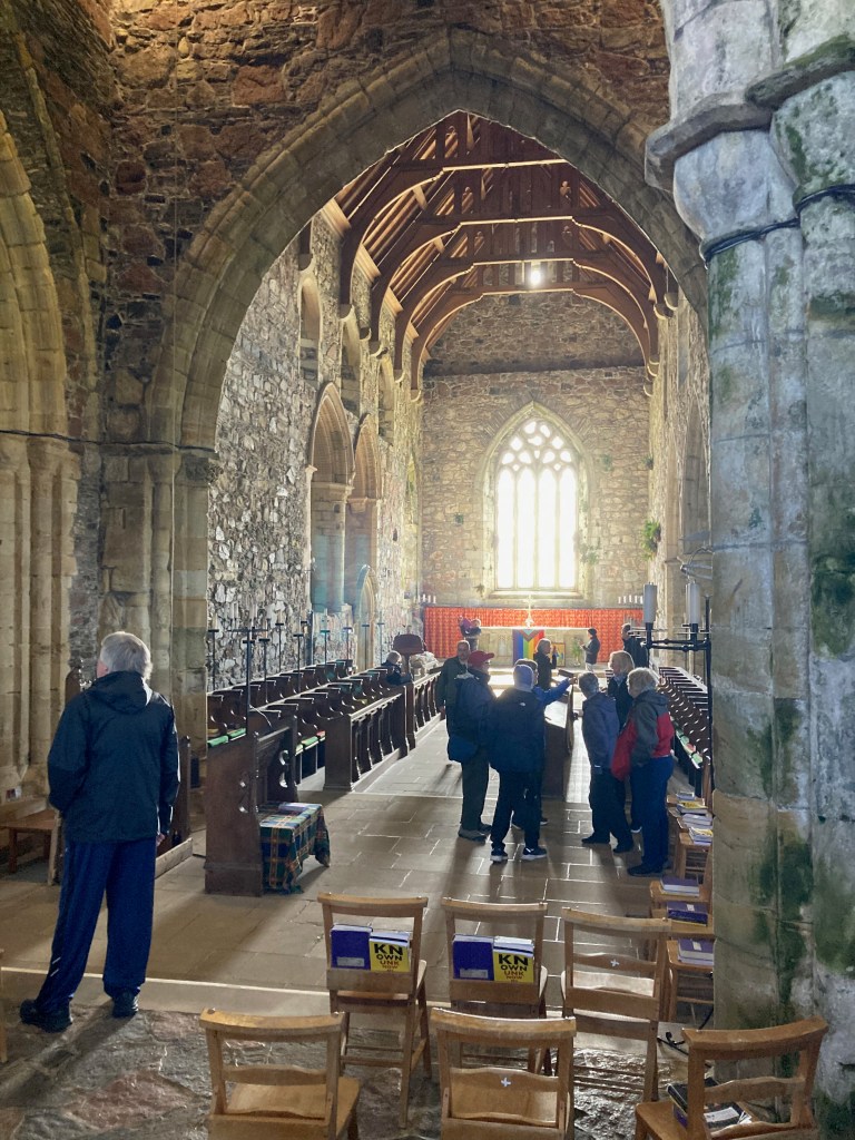 For many, Iona exemplifies the ancient Celtic concept of a “thin place,” a place where the veil between heaven and earth is porous, nearly transparent, where the two worlds become almost one. One factor in its “thinness” may be the extreme beauty of the place. In Iona, as well as other places I’ve visited, I’ve been overwhelmed by the magnificence of God’s creation in a way that makes me feel God’s nearness. Another factor may be the place’s sense of sacred history. Iona certainly has this. As Bill Stone, one of our tour leaders said about the Abbey church, “These stones are soaked in prayer.”