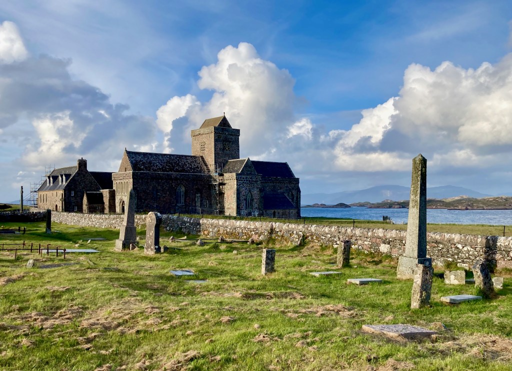Mike and I just returned from such a pilgrimage to Iona, a small island in the Inner Hebrides off the northwest coast of Scotland. To get there requires a lengthy combination of planes, trains, buses, and ferries. Iona is where St. Columba landed in 563 CE with twelve of his most devoted monks, having left Ireland to establish a new monastic community.