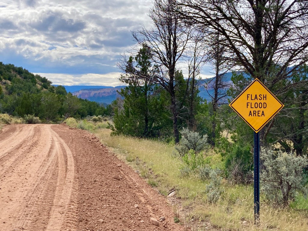 Oh dear. At Lauds this morning, the canticle made reference to “flood waters.” I hope that’s not an omen. I tossed and turned in the wee hours of the morning, worried about the road and its flash flood areas and my ability to get out of here on Friday. However, the sun came through the clouds at daybreak and filled the canyon with warmth. The clouds are parting, and I’m hoping for the best.